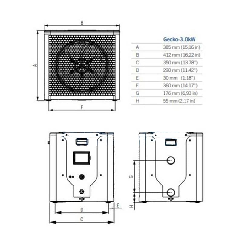 The Gecko in.temp Mini 3kW Heat Pump is a compact, ultra-efficient heating solution designed for small to medium hot tubs. Using renewable heat from the air and eco-friendly R32 refrigerant, it offers up to 75% energy savings compared with traditional 3kW electric heaters. Despite its small footprint, it delivers whisper-quiet operation at just 51dB(A) and performs reliably from 0°C to 43°C.