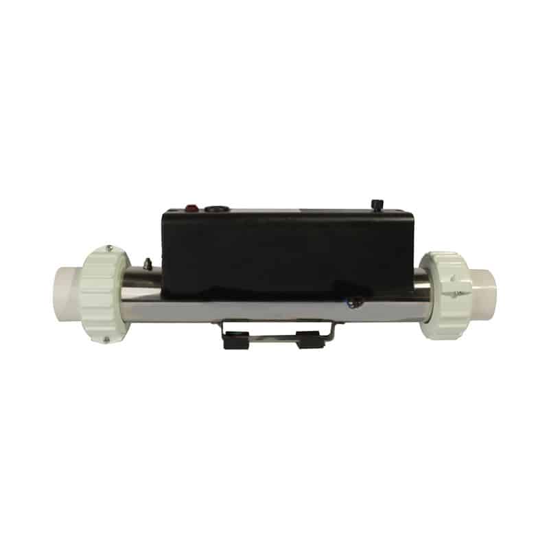A compact and efficient 3KW heater unit equipped with integrated sensors and a side-mounted thermoregulator, making it suitable for a wide range of spa systems and custom-built applications.