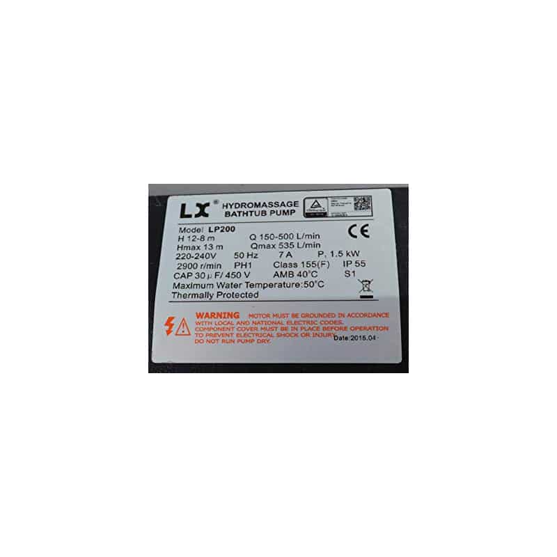 The LX LP200 is a single-speed, 2.0 HP pump designed for hot tubs and spas, particularly those manufactured in China. It provides powerful water circulation and jet propulsion, ensuring optimal spa performance.