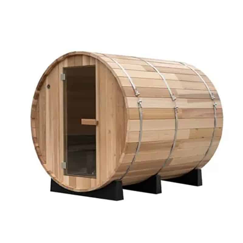 Transform your garden into a luxurious retreat with the Panorama 1800 Barrel Sauna. Designed for outdoor use, this premium outdoor sauna blends traditional craftsmanship with a modern aesthetic. With its 185cm x 185cm footprint, it comfortably seats up to 4 people and fits perfectly into any garden, patio, or spa space.